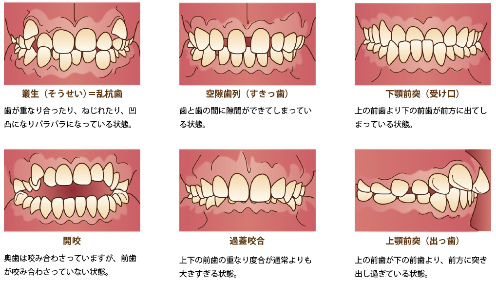 悪い歯並び、不正な歯並びのことを「不正咬合(ふせいこうごう)」といいます。不正咬合は、代表