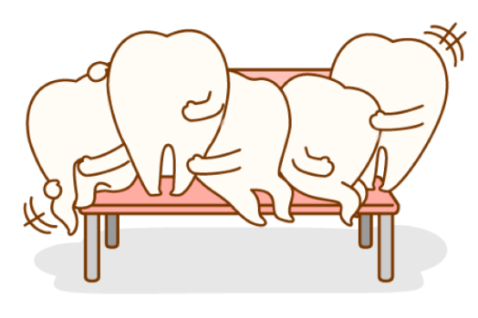 やわらかい食べ物ばかりを食べていると、顎の骨の発達が悪くなる傾向があります。顎の骨が必要なだけ成長しないと、永久歯が並ぶだけのスペースがなくなってしまい、デコボコな歯並びにな ってしまいます。例えるならベンチには限られた人数しか座れないため、ベンチが小さくなると全員がきちんと座れなくなってしまうのと同じです。現代は加工食品が普及し、柔らかい食べ物を食 べる機会が増えています。この軟食化は、咬む刺激を少なくしてしまい、あごの成長の妨げとなっていると考えられています。実際、縄文人は親知らずまで生え揃っていました。現代人は、あごの 骨が小さく、親知らずの並ぶスペースが足りないどころか、28 本の歯がキレイに並ぶスペースすら足りなくなってきている傾向があります。